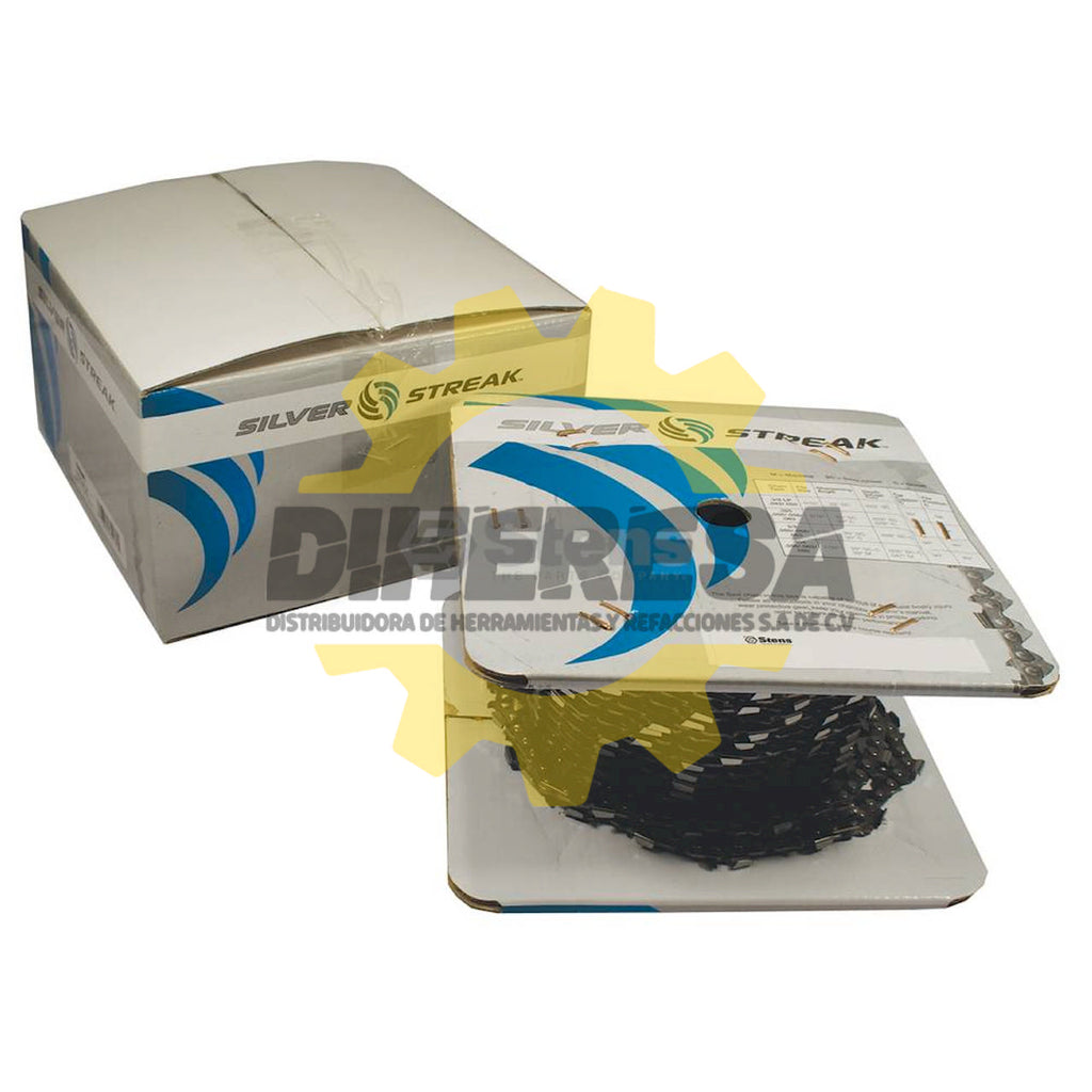 Pitch: .325" , el embalaje Tipo: Branded caja, Tipo: Semi-cincel estándar, incluye correas laterales, correas preestablecidos y 10 cajas de bucle precortadas, motosierra Calibre: .050, Duración: 25 '