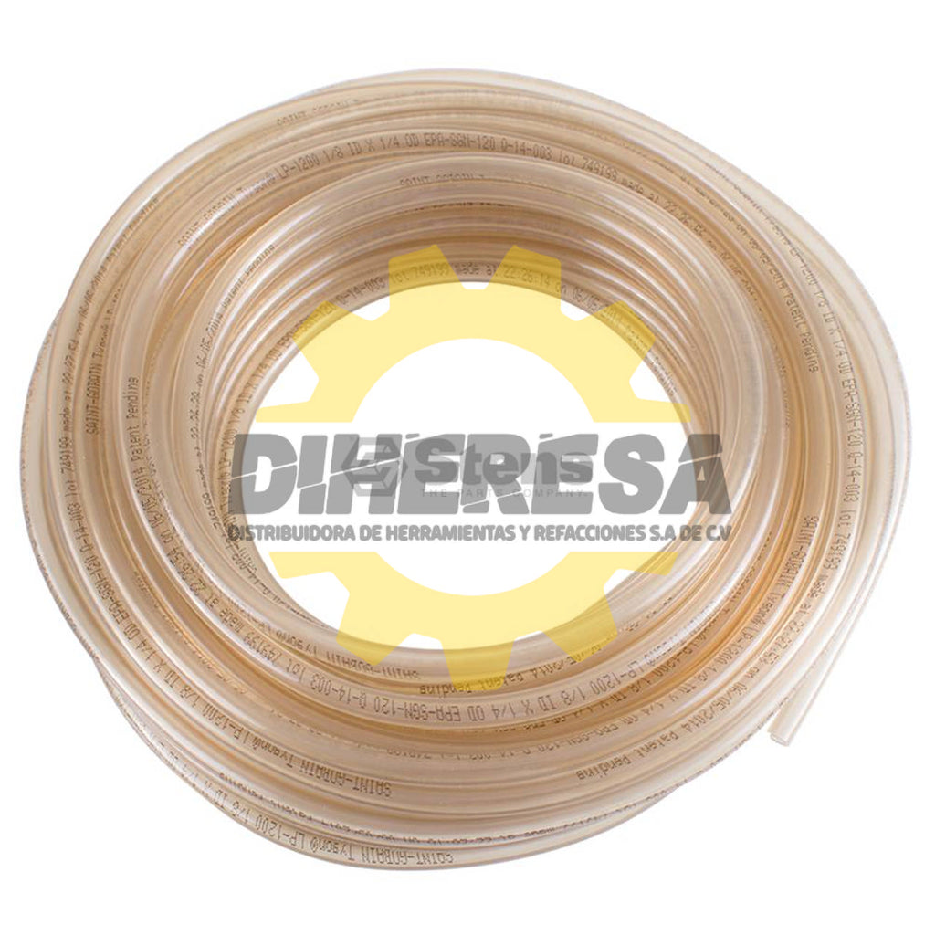 alta pureza revestimiento de fluoropolímero de eliminar el riesgo de contaminación del carburador de distractible caucho, transparente para la fácil diagnóstico de flujo de combustible o problemas de fugas, color: transparente, envasado 50' por caja individual para facilitar el almacenamiento y la manipulación, el EPA y CARB aprobados para cumplir las normas de baja penetración de 15 g / m2 / día, Hecho en EE.UU., ID: 1/4 "etanol: Compatible con hasta el 100% de etanol puro, excelente retención apropiado proporcionar un gran sello para una seguridad óptima, OD: 3/8", sumergible para la mayoría de aplicaciones de combustible *, CARB: Aprobado